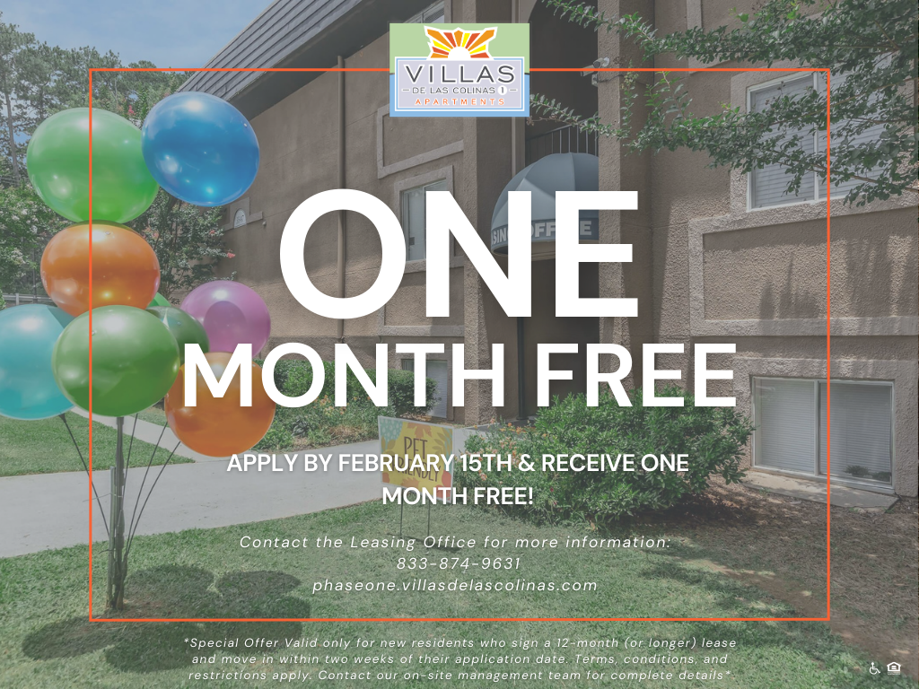 Apply by February 15th & receive one month free on 12+ month leases! Contact the Leasing Office for more information!⤵️ ¡Solicita antes del 15 de febrero y recibe un mes gratis en contratos de arrendamiento de más de 12 meses! ¡Contacta con la oficina de arrendamiento para más información!⤵️