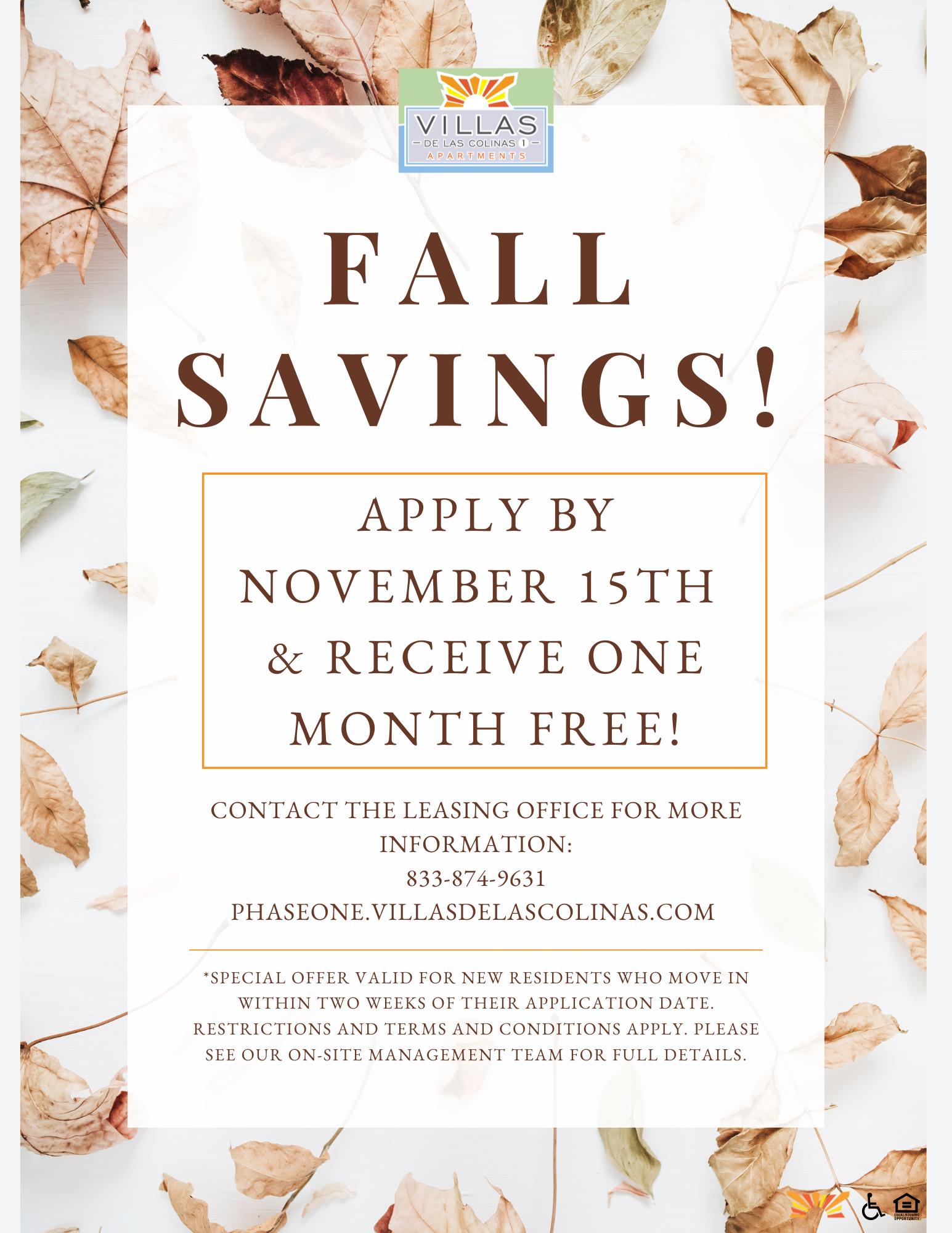 Apply by November 15th & receive one month free! Contact the Leasing Office for more information!⤵️ ¡Solicita antes del 15 de noviembre y recibe un mes gratis! ¡Contacta con la Oficina de Arrendamiento para más información!⤵️